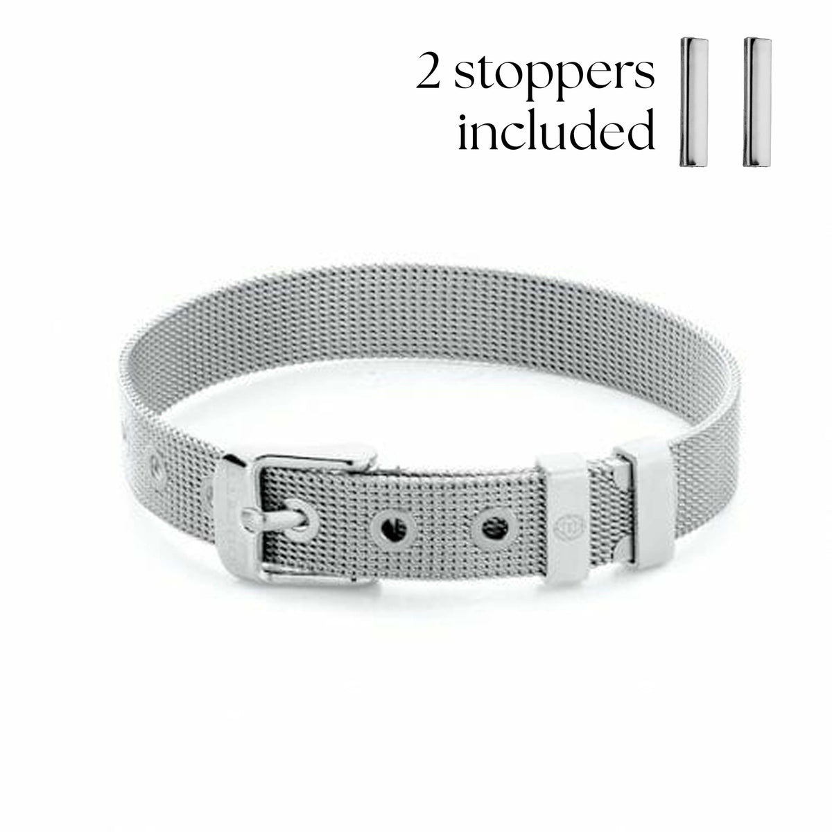 The Mesh bracelet is a real must have. Combine with a wide range of charms and personalize the bracelet with name charms. The charms are easily interchangeable. Stoppers to keep the charms in place are included with the bracelet.