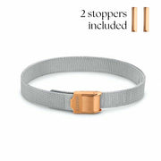 The updated and more luxurious version of the popular Mesh bracelet. The bracelet is easy to fasten with the buckle and is delivered with 2 stoppers for holding the charms in place and a small screwdriver to adjust the bracelet. The bracelet is slightly thicker and is therefore stronger. Easy to fasten and the charms are easily interchangeable. The bracelet is presented in a luxury box.