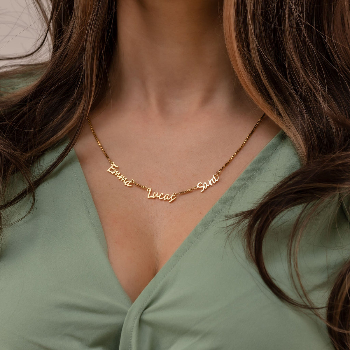 Introducing the Name Necklace, a stunning personalized accessory that allows you to showcase the names of your loved ones with elegance and style. This necklace offers you the possibility to customize it with 1 to 3 names of your choice, making it a unique and meaningful piece of jewelry.
