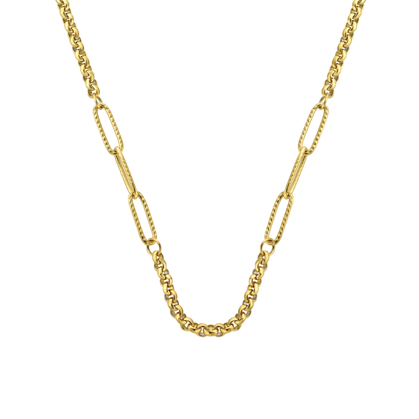 Necklace with different types of links combined, specially designed by us to give it a tropical vibe! Adjustable with a 5cm extension.