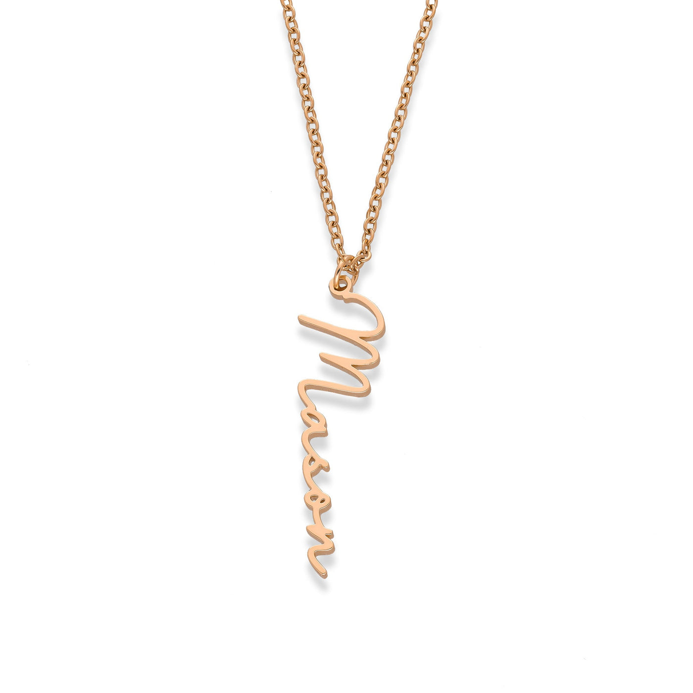 Introducing our elegantly handcrafted Custom Vertical Name Necklace. This highly personalizable piece of jewelry is designed to make a statement that lasts a lifetime. Made with the highest craftsmanship, the pendant captures your name or the name of a loved one, showcased vertically, adding a unique twist to the traditional name necklace design.
