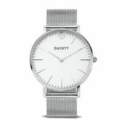 The DUCETT White Mesh silver is a ladies watch with a stainless-steel strap. The watch has an elegant silver case and strap combined with a white dial. The strap has a clasp with a push button with which the bracelet can be easily fastened, unfastened and the strap changed. The scratch-resistant sapphire glass crystal of the case is very sturdy and reduces the risk of damage. The watch is also 3 ATM water resistant and is therefore splash and rain proof.