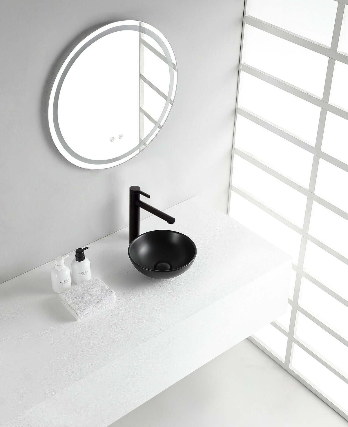 - De opbouwwastafel wordt aangeboden in mat zwart en wit.