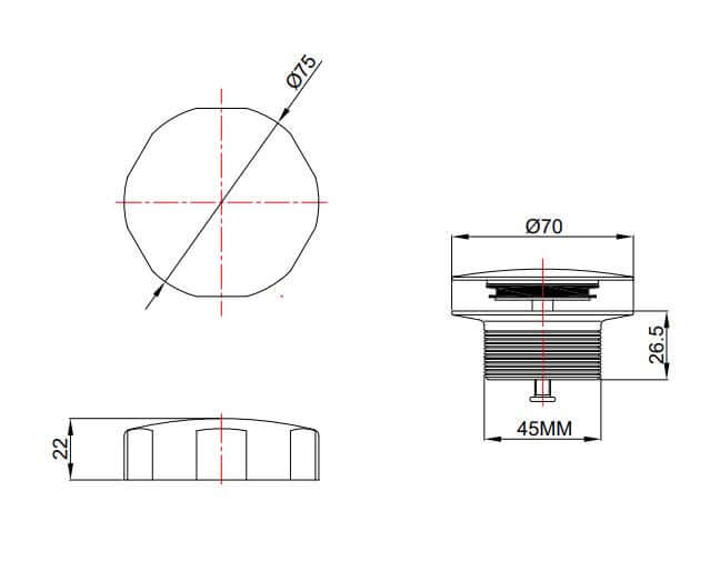 - Gatdiameter: aansluiting 1 1/2 inch, inclusief badoverloop.