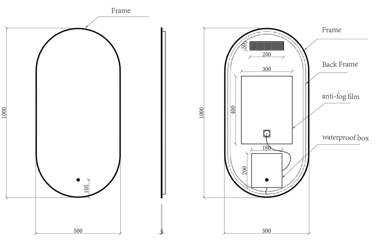 Specificaties Ovale Spiegel Wiesbaden Nomi met Dimbare LED Verlichting en Spiegelverwarming 50 x 100 cm Mat Zwart