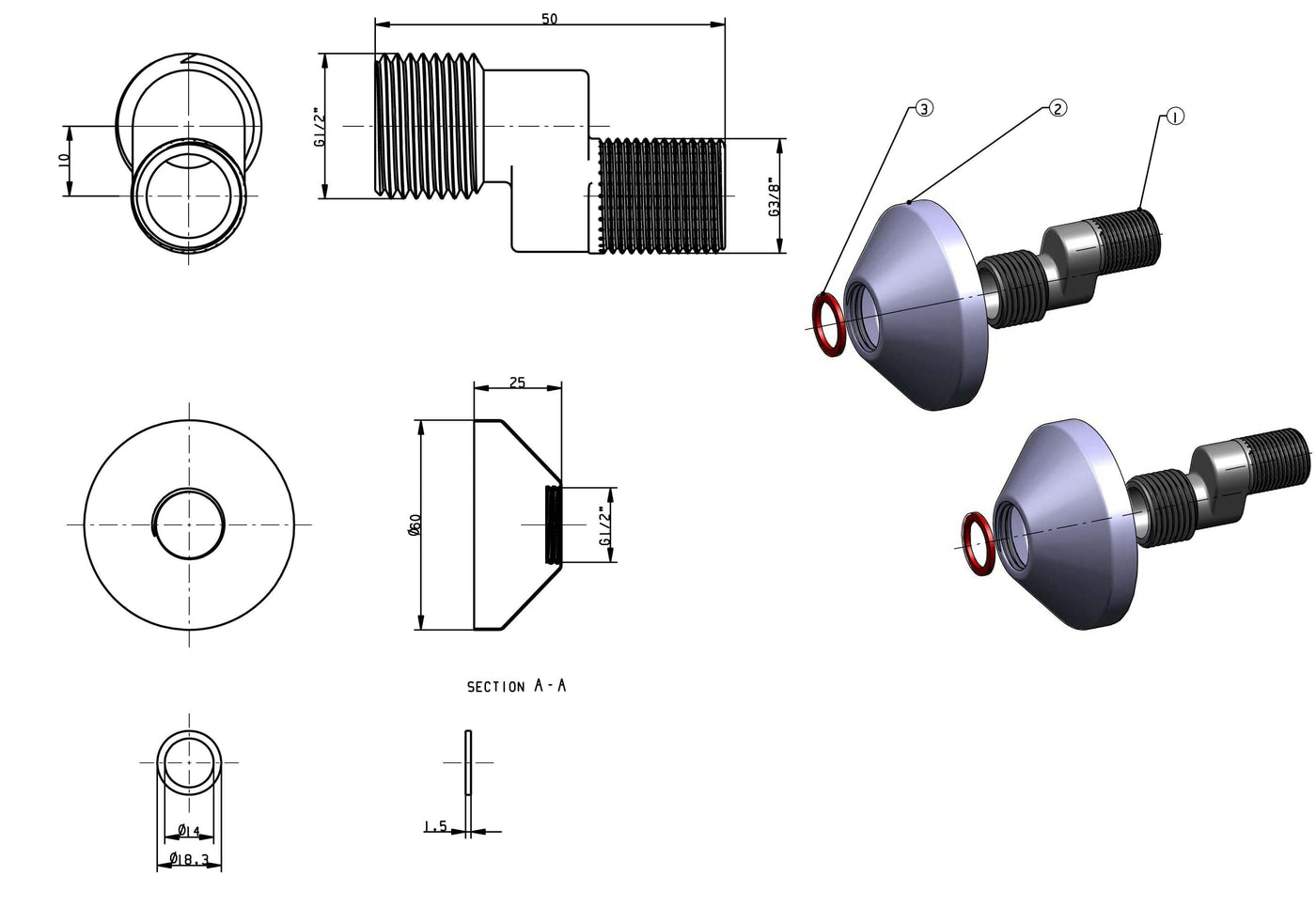 - - 1/2 x 3/8 - voor HOH 12 cm - chroom rozet
