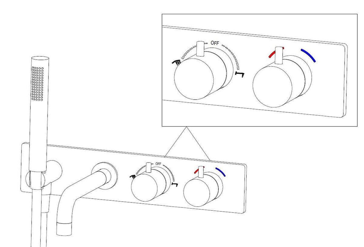 Een thermostatische badkraan mengt automatisch koud en warm water. Met de hendel of knoppen kun je de gewenste watertemperatuur op de kraan instellen, zodat een constante temperatuur behouden blijft.