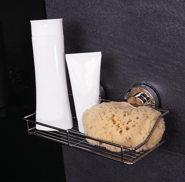 Dit doucherekje is gemaakt van kunststof en roestvrijstaal en hang je door middel van de zuignappen makkelijk op in de badkamer.