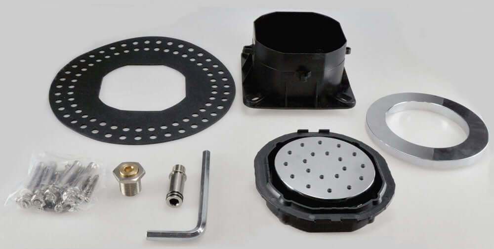 Voor een optimale douche-ervaring kun je naast de hoofddouche een of meerdere zijdouches in de doucheruimte plaatsen. Zo komt het water niet alleen van boven, maar ook van de zijkant. Deze Rombo ABS verstelbare inbouw zijdouche van Wiesbaden Sanitair heeft een totale diameter van 13,5 cm en wordt compleet geleverd inclusief inbouwdoos. De sproeigaatjes zijn allemaal met elkaar verbonden door middel van een mat. Hierdoor kunnen de sproeigaatjes niet loslaten en kun je de zijdouche eenvoudig schoonmaken.